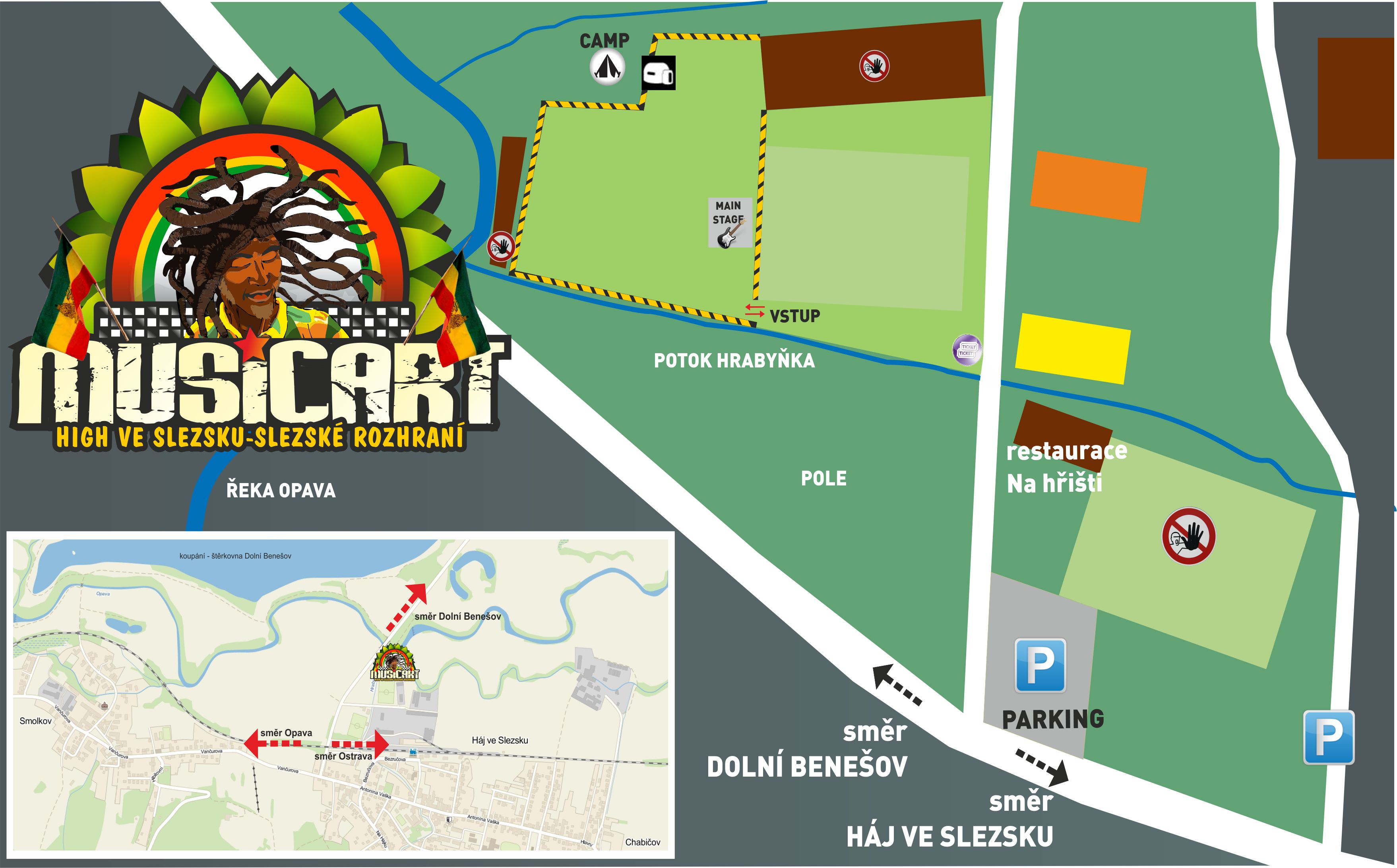 Festival MUSICART se bude konat v malebné střediskové obci Háj ve SLezsku mezi Ostravou a Opavou v místě fotbalového hřiště TJ FK Háj ve Slezsku, který se nachází cca 200m od stanice vlakového nádraží Háj ve SLezsku.